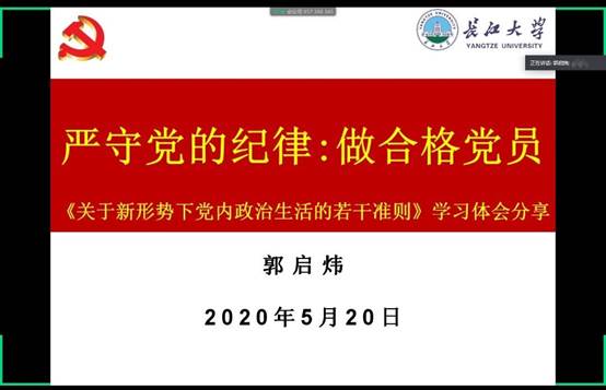 办好中国的事情,关键在党,关键在党要管党、从严治党。党要管党必须从党内政治生活管起,从严治党必须从党内政治生活严起。会上,郭书记结合准则背景,在坚定理想信念、坚持党的基本路线、坚决维护党中央权威、严明党的政治纪律、保持党同人民群众的血肉联系、坚持民主集中制原则、发扬党内民主和保障党员权利、坚持正确选人用人导向、严格党的组织生活制度、开展批评和自我批评等方面进行了详细的解读。他同时将理论联系实际,告诉大家,作为员工党员,更加要坚定理想信念,坚决维护党的领导服从组织,严明党的纪律;从员工中来要回到员工中去,决不允许员工党员欺压普通同学,禁止唯分、唯学习成绩论。并定期开展批评和自我批评,及时改正错误。