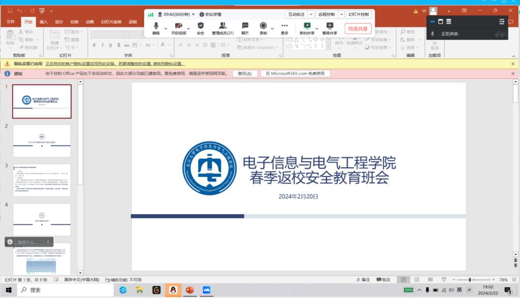 2月22日前,各班级以线上方式召开了返校安全教育主题班会,辅导员、班主任在会上强调了返校安全,讲解了交通安全、防电信诈骗、延迟返校请假手续办理、开学补考复习、考研与就业等重点事项,为公司员工返校工作稳步有序推进打好良好基础。