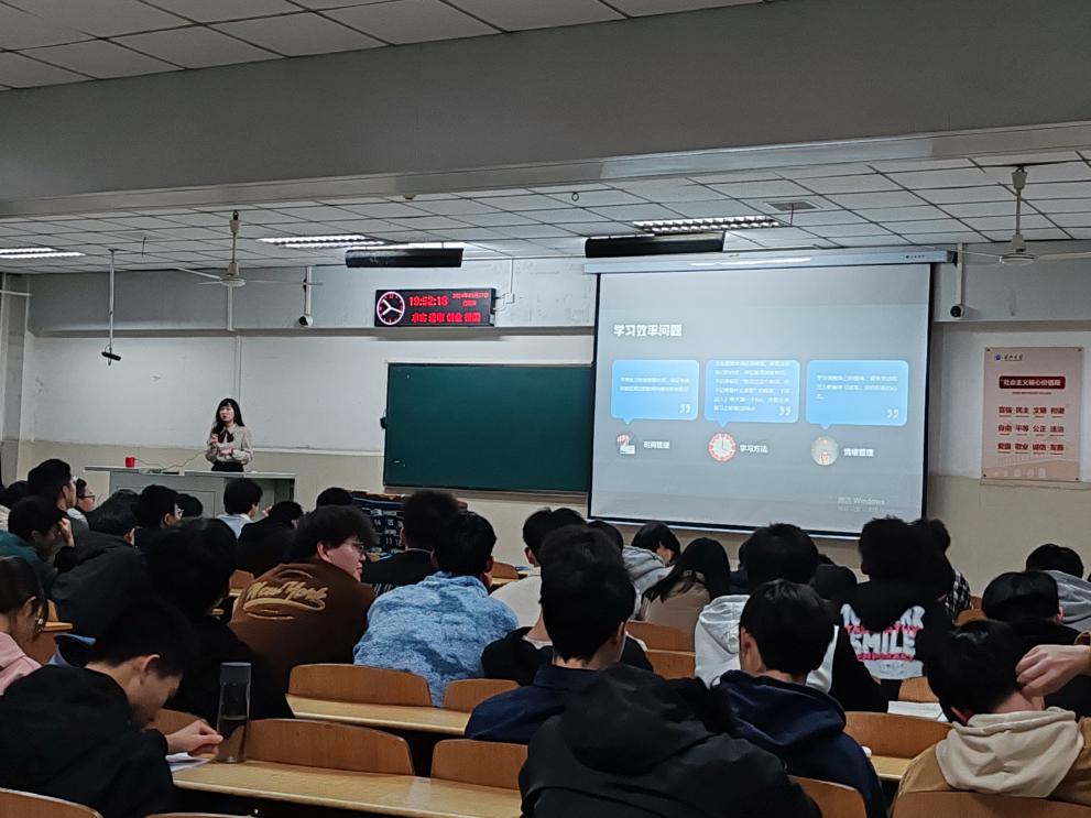 朱锐老师对上学期整体学习情况进行回顾,分析了期末考试成绩和英语四级成绩,肯定了同学们的努力,也指出了部分课程学习情况的不足之处。他对本学期的学习计划进行了安排,对学风建设提出了要求,鼓励大家不负春光,奔跑向前。