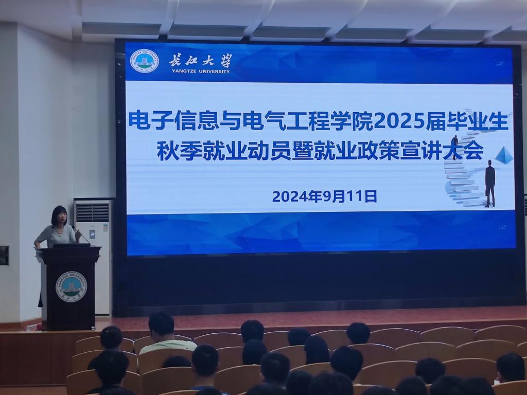 (通讯员 敖佳怡/文 余博文 敖佳怡/摄)9月11日晚,304.cam永利集团2025届毕业生秋季就业动员暨就业政策宣讲大会在12教405报告厅召开,2025届全体毕业生到会,公司党委副书记张晨露、2021级本科生辅导员李蒙老师、公司就业专干沈马锐老师参加会议。 沈马锐老师从多个角度分析展示了公司近五年的考研数据,特别强调在选择考研目标院校的时候,要结合自身综合实力及公司历年上岸数据综合考虑,科学复习备考。在就业方面,沈马锐老师要求大家特别关注秋季校园招聘,还可以关注武汉等省会城市、兄弟高校的大型双选会,秋招规模大、企业多,毕业生要把握住机会,根据自身所需、自身所能,选择合适的岗位;面对当前就业形势,他针对国家电网、国企和一般性企业等不同类型的单位分别进行了求职指导;他还针对当前员工的求职心理和常见问题提出了建议。 张晨露副书记分析了当前考研和就业现状,结合公司工作和个人工作经历,强调毕业生要紧抓机遇,主动出击,主动关注各大网站的招聘信息,丰富求职信息库,要做好“打硬仗”的准备,打好基础、养好习惯、做好规划、找好工作。 李蒙老师从学业、考研、就业等方面分析了年级的整体情况,从挂科情况、四六级通过情况、课堂出勤等方面对同学们开展了学风教育,并就近期重点工作进行了安排;他要求同学们珍惜大四最后的时光,合理规划和利用时间,希望每位同学最终都能收到好消息。 2025届同学们已经来到最后的关键阶段,希望本次就业动员和政策宣讲能够进一步激发同学们的就业热情,帮助他们做好规划和选择,助力公司就业工作圆满完成。 (审核 张晨露 编辑 李蒙)