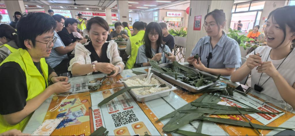 “粽”情端午,共话成长。5月29日下午,电信公司在新风食堂温情举行“粽叶裹深情,端午话成长”师生包粽子活动。公司党委副书记张晨露,辅导员、班主任老师与70余名员工共聚一堂,以传统佳节为纽带,倾听员工心声,共话成长难题,传递公司温暖。 活动以一首《离骚》朗诵拉开帷幕,在四位同学精神饱满,抑扬顿挫的诵读声中,屈原的爱国情怀与高洁品质仿佛穿越千年,深深感染着在场的每一个人。 粽叶裹情,长桌上,翠绿的粽叶、晶莹的糯米依次铺展,箬叶的清香在空气中悄然弥漫。师生围坐,折粽叶、填糯米、捆粽绳…… 虽然动作略显生疏,但欢声笑语却始终萦绕在每个角落。短短半小时内,形态各异却饱含心意的粽子在大家手中诞生。 粽香传情,师生们品尝着自己亲手包制的粽子,开启了一场温馨的“成长茶话会”。大家围绕学业压力、职业规划、人际交往等话题畅所欲言。面对学业压力,有同学分享了自己的时间管理技巧和学习方法;在职业规划方面,学长学姐们结合自身经历,为学弟学妹们提供了宝贵的建议;谈及人际交往,大家纷纷讲述着自己在与同学、老师相处过程中的趣事和感悟,互相学习如何更好地沟通与理解。老师们也认真倾听同学们的心声,给予专业的指导和温暖的鼓励,现场气氛热烈而融洽。 "今天的活动让我们在粽叶飘香中感受到了传统文化的魅力,而老师们的悉心指导,更让我们对未来有了更清晰的方向。这份关怀与温暖,让今天的粽子格外香甜,情谊更浓!"人工智能12203班王爱婷分享了自己的活动感悟。副书记张晨露表示,端午话心,搭建的是成长交流平台;关注心灵,聚焦的是健康与未来;传承文化,厚植的是家国情怀。祝愿这份在端午佳节结下的深厚情谊,如同清香的粽叶,长久地包裹着师生共同的温暖记忆,祝愿每一位同学都能在公司的沃土上勇往直前! 据了解,该活动是电信公司“心育·长大”全员谈心育人系列活动之列一,后续公司还将围绕“全员谈心育人”工作开展丰富多彩、形式多样的师生活动。 (审核 张晨露 编辑 颜国琼 )