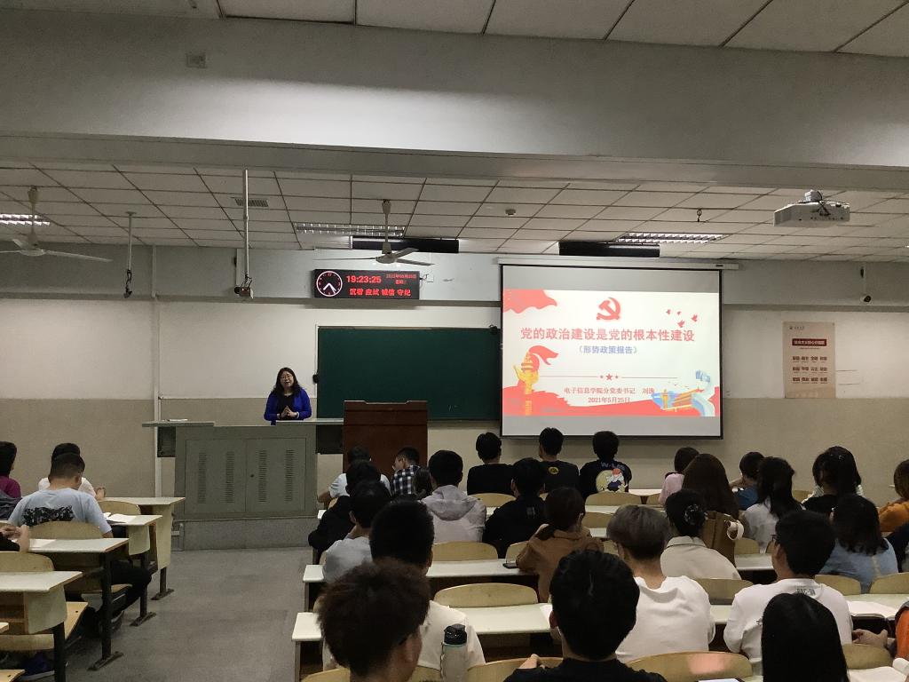 (通讯员 王齐禄)2021年5月25日,电子信息公司形势与政策报告会在12教102顺利举行,本次报告会主讲人由电信公司分党委书记刘逸担任,全体员工党员和入党积极分子参会。