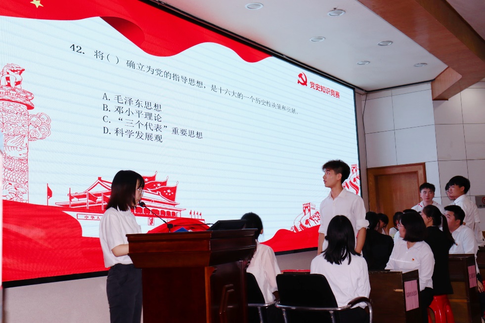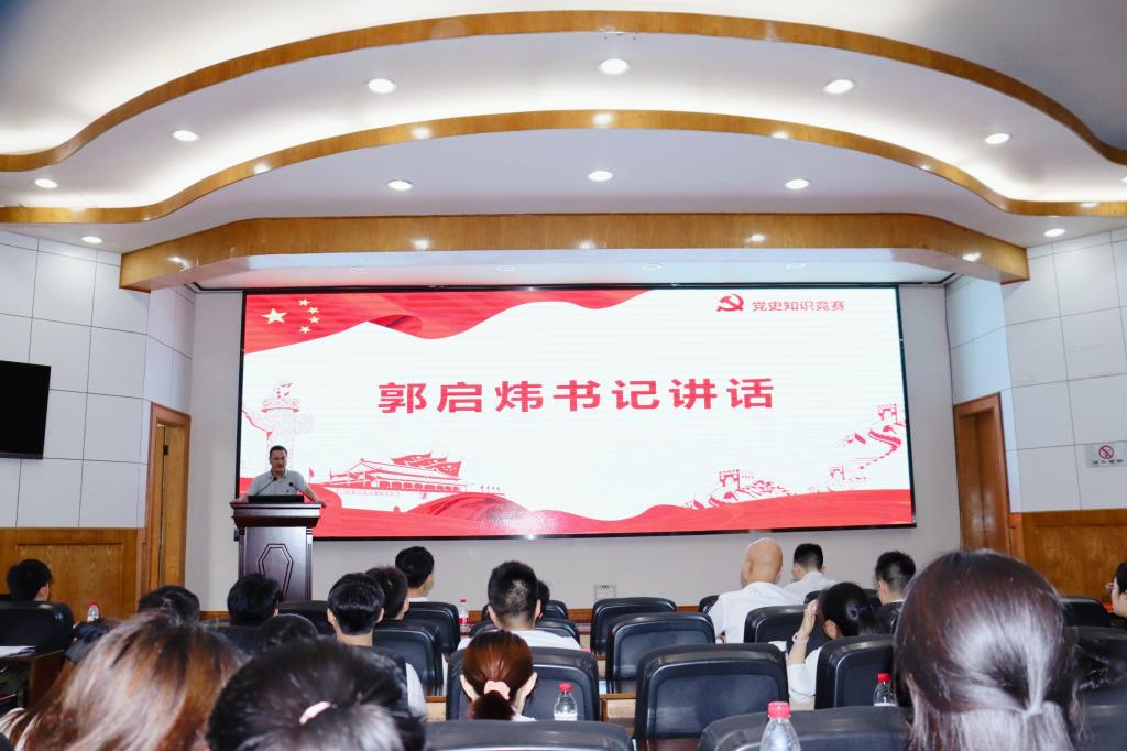 为了庆祝建党100周年,同时激发广大青年的爱国热情和坚定广大青年的政治信念,627日下午3时,电子信息公司在11教石油报告厅举办了以“知史爱党 知史爱国为主题的党史知识竞赛。参加本次活动的有电子信息公司员工党员和入党积极分子,电子信息公司党委副书记郭启炜、王齐禄老师、万谦老师出席本次活动,谢祥凤担任活动主持人。
