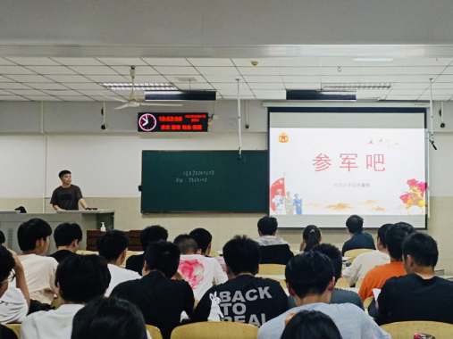 线下征兵宣讲会于5月27日~29日分年级召开,各年级全体本科生参加。会上,各年级辅导员对应征条件、应征流程、优待政策和体检要求等方面进行了详细介绍。