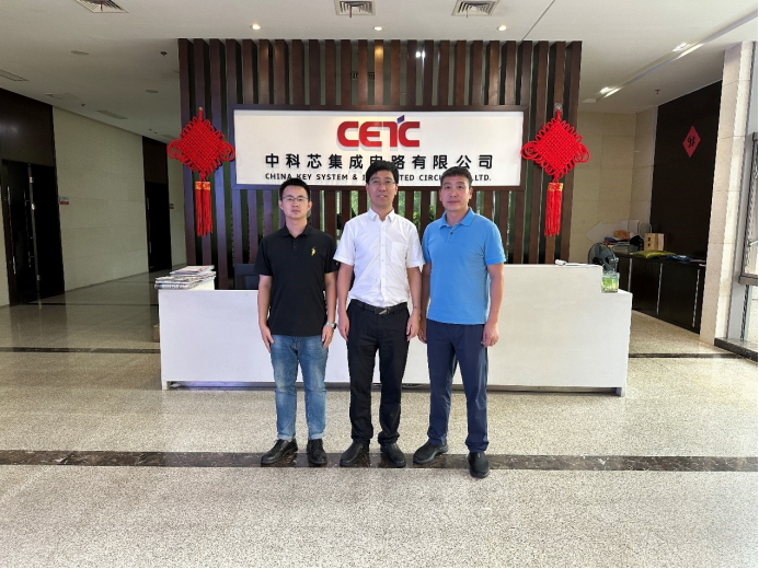 在中科芯集成电路有限公司(58所),副总经理薛亮重点介绍了公司的发展历程、使命愿景、科研成果、产业化发展之路以及中国电科(无锡)集成电路产业园、智慧中科芯园区的建设情况和公司中长期发展战略规划。罗明璋表示希望将来充分利用双方技术、人才及联合创新平台优势,建立良好的沟通和交流机制,能力互补、共同成长,并诚挚邀请公司副总经理薛亮员工回母校参加合并组建20周年主题活动。