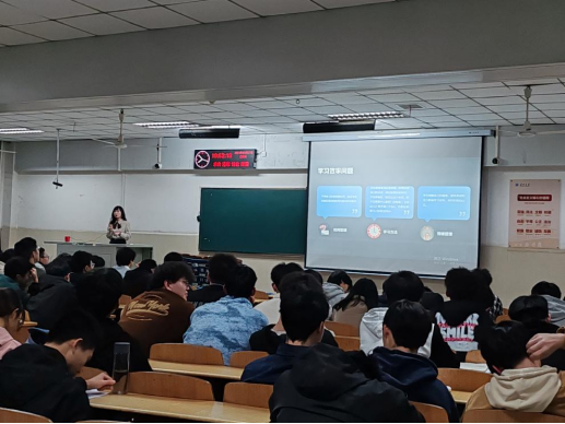 朱锐老师首先对上学期整体学习情况进行回顾,分析了期末考试成绩和英语四级成绩,肯定了同学们的努力,也指出了部分课程学习情况的不足之处。他对本学期的学习计划进行了安排,对学风建设提出了要求,鼓励大家不负春光,奔跑向前。