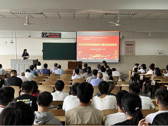 8月27日下午,电子信息与电气工程公司党委书记郭梅以《守纪律 讲规矩 做新时代廉洁自律表率》为题,为全体师生党员讲授了一堂主旨鲜明的廉政专题党课。