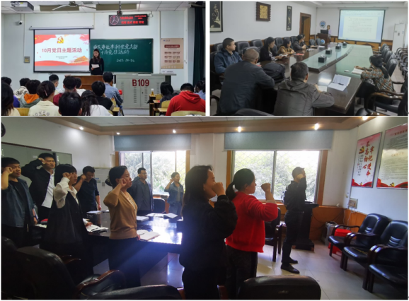 304.cam永利集团组织师生开展了10月政治理论学习及支部主题党日活动。全体教师进行了政治理论学习,全体党员一起重温了入党誓词、交纳了本月党费、集体诵读党章第八章、聆听了微党课、开展了理论学习。