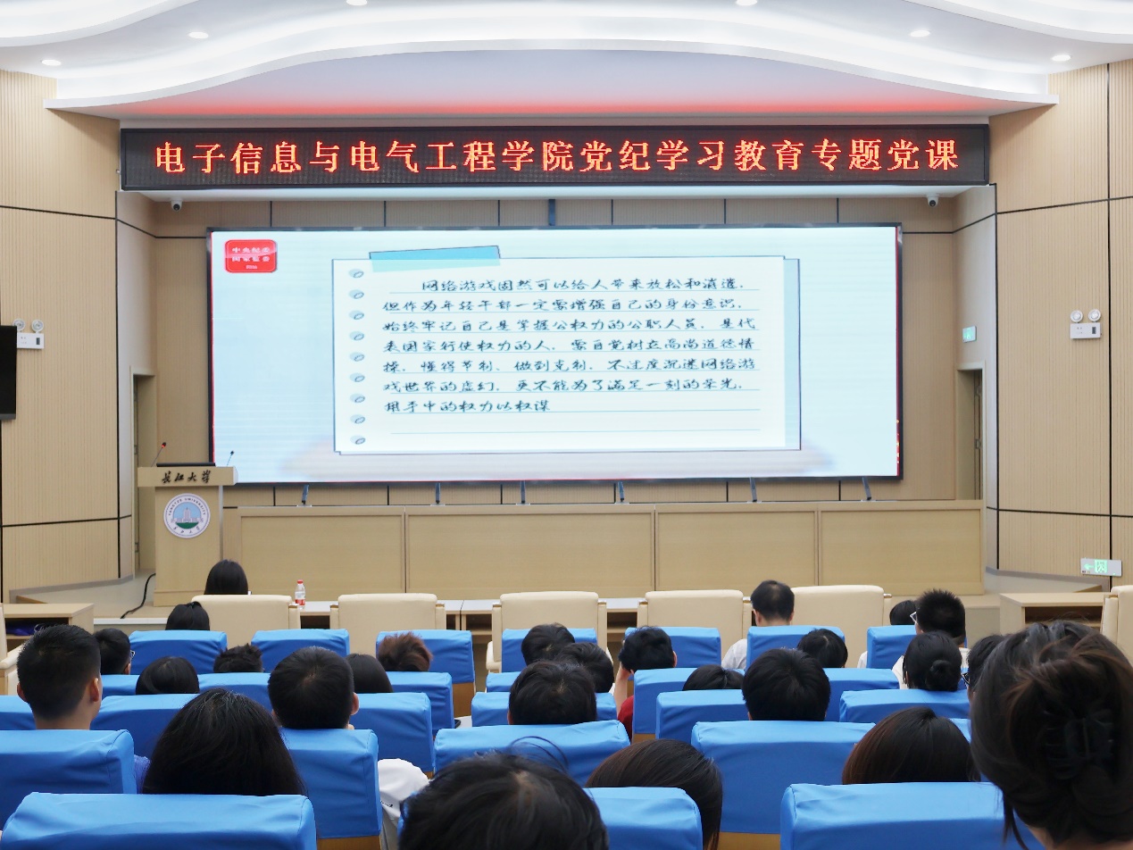 为推进党纪学习教育走深走实,切实增强全体党员的纪律意识和规矩意识,6月13日晚,公司党委书记郭梅以《从严从实检身正己 遵规守纪刻印在心》为题为全院员工党员讲授了党纪学习教育专题党课,深入解读《中国共产党纪律处分条例》。 围绕《中国共产党纪律处分条例》,郭梅从《条例》修订的背景、《条例》的主要内容和如何贯彻落实《条例》三个方面内容进行讲授。她结合高校师生可能会遇到的实际情况,通过列举贴近日常生活的实际案例,对新修订的《条例》进行了详细解读;她强调,党纪学习教育要注重融入日常、抓在经常,要强化守的意识、践行守的行为、完善守的制度、拓展守的链条,把遵规守纪铭刻在心,内化为言行准则,进一步强化纪律意识,加强自我约束,自觉做到学纪、知纪、明纪、守纪,始终做到忠诚干净担当。 党课结束后开展警示教育,全体党员一同观看了中央纪委国家监委推出的青年干部警示教育片:《追求“精致”生活的代价》和《在网络游戏里失控》。两部警示教育片贴近员工实际,让大家明晰了心中纪律的标尺,提升了警示教育的感染力和说服力。 党纪学习教育启动以来,公司党委高度重视,精心组织实施,先后出台了《中共304.cam永利集团委员会关于深入开展党纪学习教育的实施方案》《电子信息与电气工程公司党委理论学习中心组党纪学习教育读书班学习计划》《电子信息与电气工程公司党支部<中国共产党纪律处分条例>学习计划》等文件,理论学习中心组读书班集中学习5次,领导干部、支部书记先后讲纪律党课10余次,覆盖公司全体师生党员,通过行动落地扎实推动《条例》学习贯彻入脑入心、见行见效。 (审核 郭梅 编辑 李蒙)
