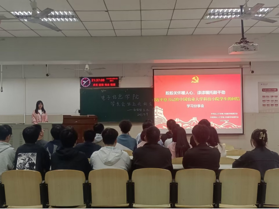 同学们紧紧围绕习近平总书记重要回信精神和对青年的殷切期望,结合自己平时的学习情况和实践经历,畅谈对回信精神的深切感悟。有的同学表示要志存高远、脚踏实地,学好电信专业知识,练就过硬本领,用实际行动服务祖国建设,投入到“卡脖子”问题的研究中去;有的同学认为要“自找苦吃”,凝聚不惧困难与挫折的勇气去突破和创新;还有同学表示,我们要把论文写在中国的大地上,将在校所学用于建设国家、服务人民。