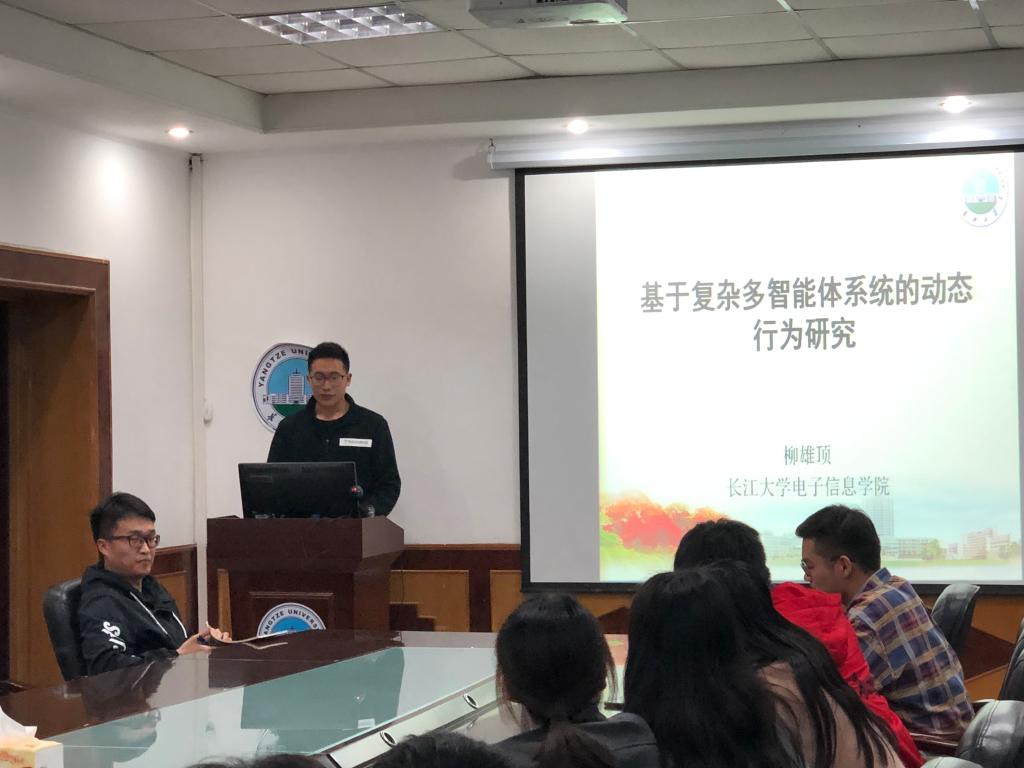 (通讯员 张宝珍)2019年4月12日19:00时,电信公司研究生会开展了2019年研究生学术报告交流活动。柳雄顶、龚盼攀两位同学围绕自己研究的课题进行了汇报,校研究生会的同学也受邀前来观摩。