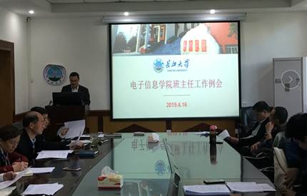 2019年4月16日16:30,公司新学期班主任会议在10教205召开,经理熊晓东、党委书记王红艳、副经理罗明璋、副经理李涛、党委副书记郭启炜及全体班主任参加了此次会议,会议由党委副书记郭启炜主持。