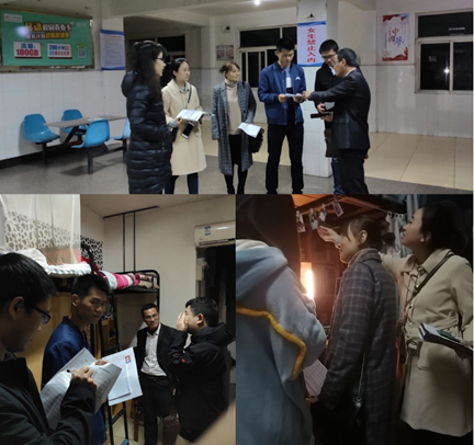 郭书记带领年级辅导员重点检查了留级生和学业困难员工宿舍,了解员工学习的情况,分析挂科的原因,并给予员工一些学习方面的建议。