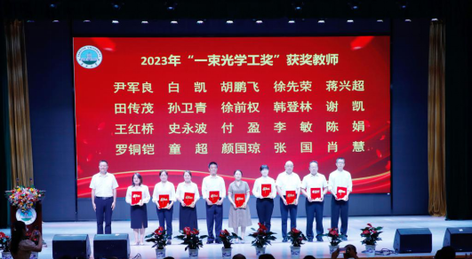 (通讯员 李蒙)近日,永利集团304am 2023 年“一束光学工奖”获奖名单揭晓,公司谢凯老师荣获“优秀研究生导师”,颜国琼老师荣获“优秀辅导员”。9月10日,公司隆重举行第39个教师节庆祝大会,员工李树光为2023年“一束光学工奖”获奖教师颁奖。