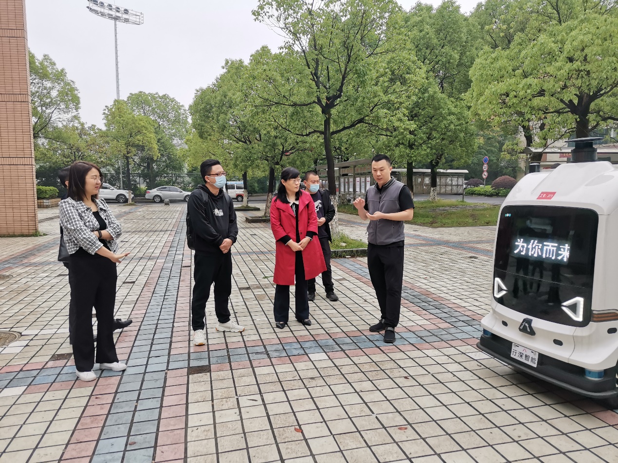 随后,双方在湖南城市公司现场参观了行深智能智慧校园应用经典案例之一——无人驾驶小车。目前行深智能无人配送车已经进入全国四十多所高校提供无人配送服务,包括快递无人配送、零售商品无人配送,员工只需手机下单即可预约取件,大大缓解了员工排长队集中取快递现象。此外还有无人驾驶校园防疫消杀车,旨在助力打造安全、有序的智慧校园。