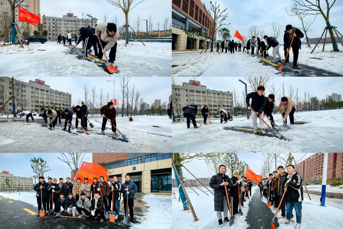 龙行龘龘,新程再启。刚刚结束了新春佳节,新的学期已然来临,湖北持续性降雪和冻雨天气使得校园积冰深厚,给师生出行带来不便。为方便师生返校,保障安全出行,2月24日,公司积极响应学工部号召,组建了一支师生铲雪除冰突击队,在校园内开展铲雪除冰行动。号召一经发出,就得到了已返校同学们的热烈响应。